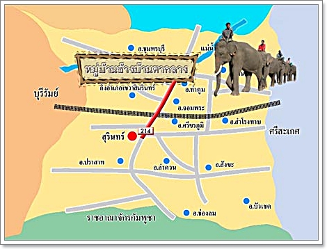 หนังสือพิมพ์พลังชน แนะนำ " สุรินทร์ ถิ่นเมืองช้าง " สถานที่ตั้งของหมู่บ้านช้าง ตั้งอยู่หมู่ที่ 9 และ 13 บ้านตากลาง ตำบลกระโพ อำเภอท่าตูม อยู่ห่างจากจังหวัดสุรินทร์ไปทางเหนือตามทางหลวงหมายเลข 214 (สุรินทร์-ร้อยเอ็ด) ก่อนถึงอำเภอท่าตูม มีทางแยกซ้ายบริเวณหลักกิโลเมตรที่ 36 ไปตามทางราดยางอีกประมาณ 22 กิโลเมตร พื้นที่หมู่บ้านเป็นที่นาและป่าละเมาะสลับกับป่าโปร่งเหมาะกับการเลี้ยงช้างชาวบ้านตากลางดั้งเดิมเป็นชาวส่วย หรือ กูย หรือ กวย มีความชำนาญในการคล้องช้างป่า ฝึกหัดช้างและเลี้ยงช้าง ส่วนมาต้องเดินทางไปคล้องช้างบริเวณชายแดนต่อเขตประเทศกัมพูชา